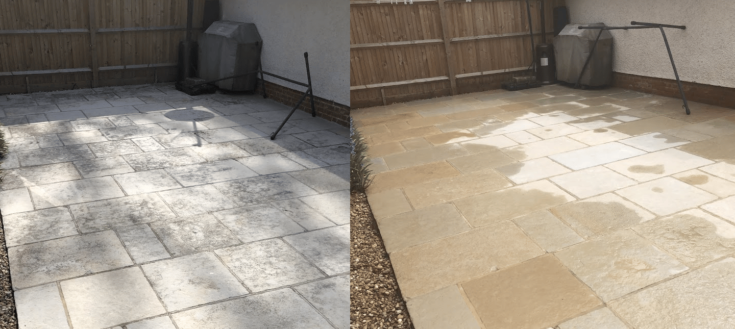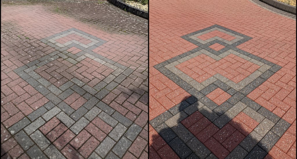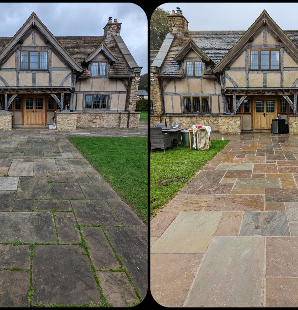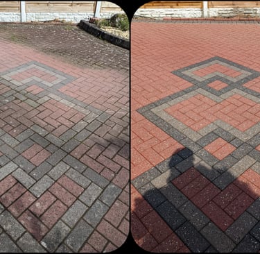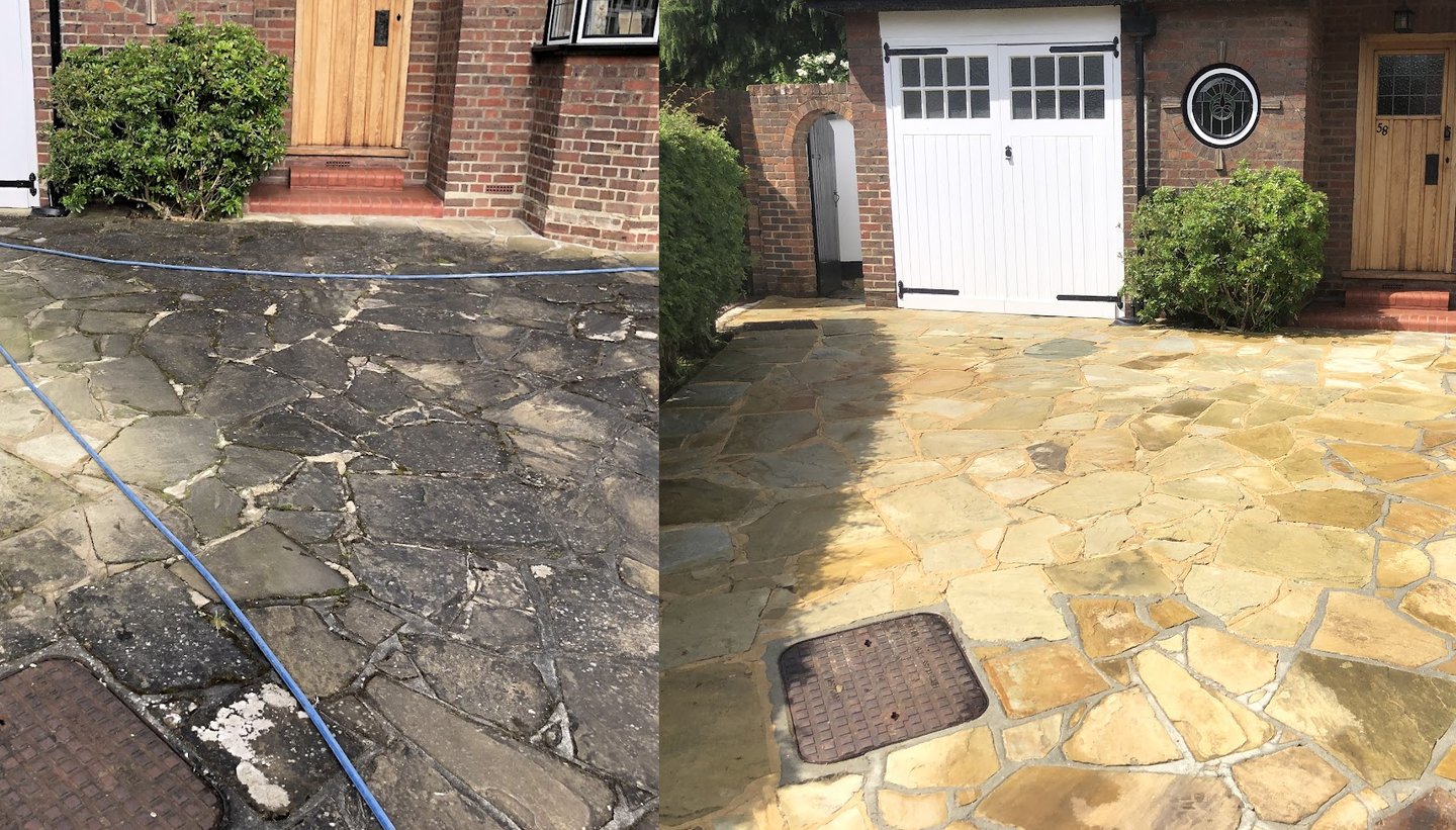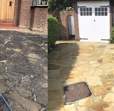 Explore our stunning exterior cleaning transformations for driveways and patios.